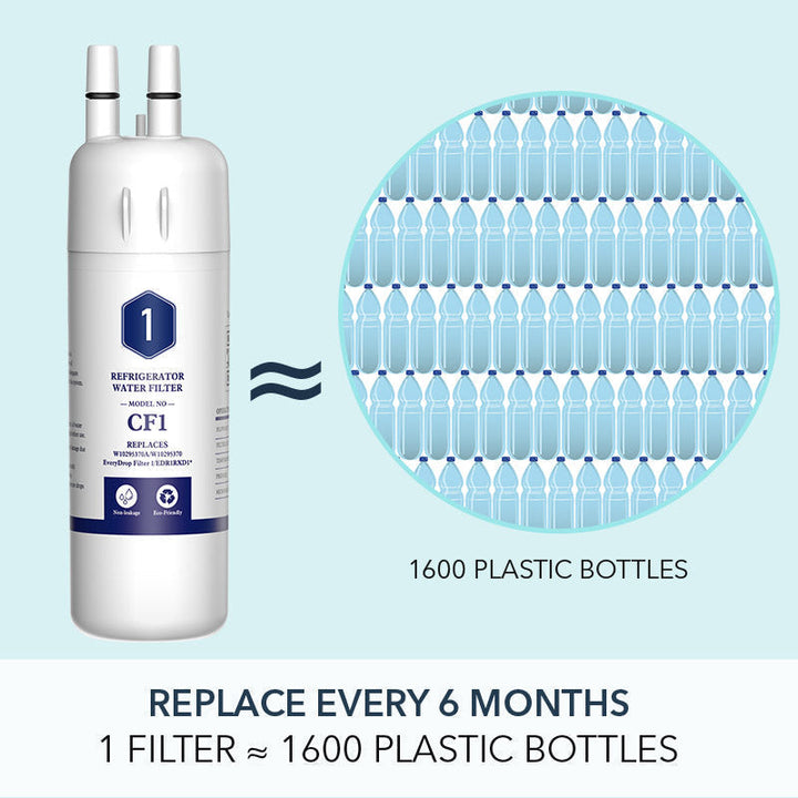 This refrigerator water filter 1 could reduce 24 impurities in water as well as other harmful contaminants. The fridge filter is compatible with Everydrop Water Filter 1, W10295370A, EDR1RXD1 Water Filter and 9081 Water Filter. We recommend to replace the filter every 6 months to ensure the filtration performance.